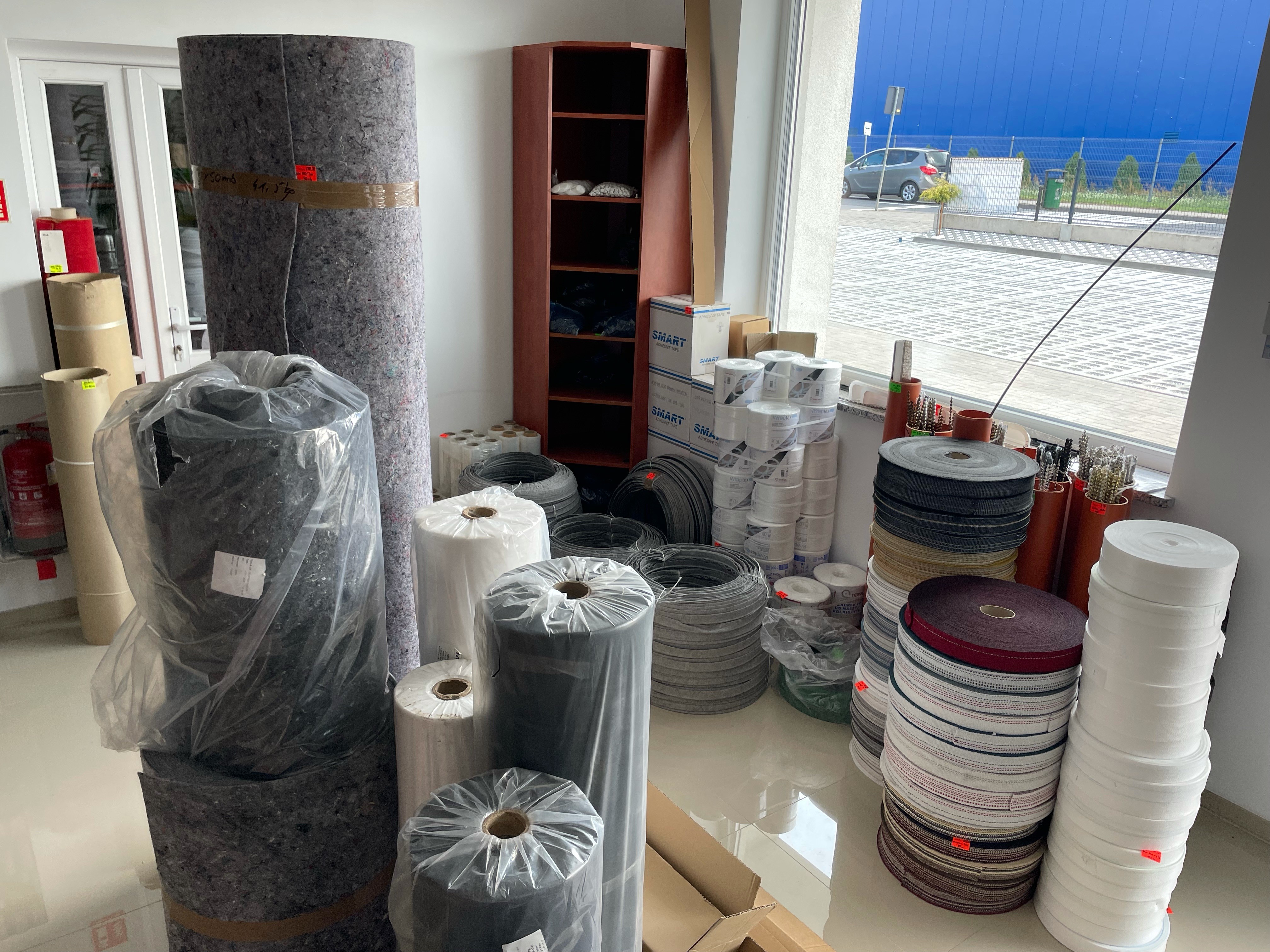 Pasmanteria meblowa, taśmy, nici, dratwy, gumy, rzepy, tasiemki, guziki, ostrzałki, sznurki, gumki,
